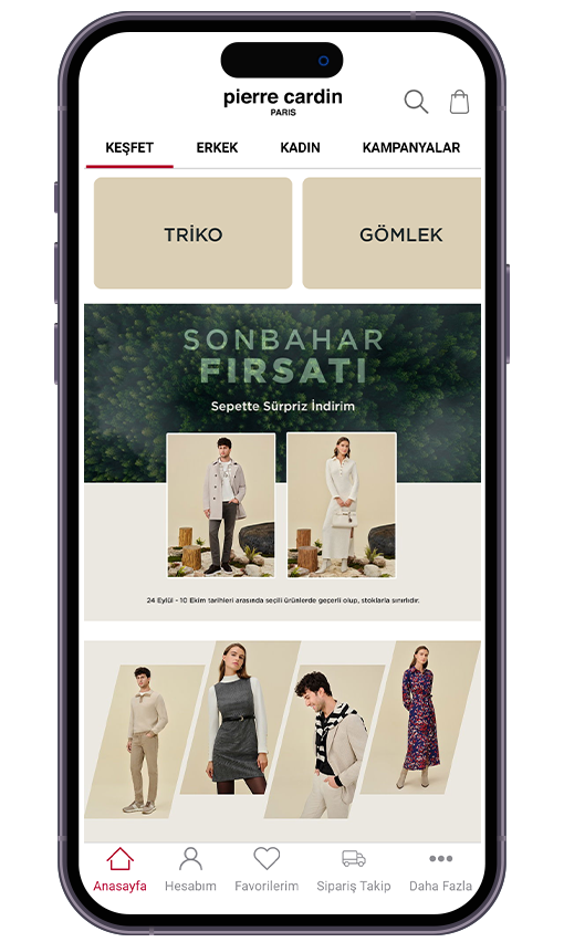 Pierre Cardin’in detaylarla bezenmiş zengin tasarım dünyasını artık akıllı telefonlarınızdan da takip edebilir, Pierre Cardin ürün yelpazesini inceleyebilir, dilediğiniz ürünü siparişi edebilir ve size özel ayrıcalıklardan yararlanabilirsiniz.