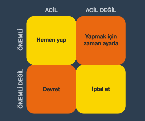Eisenhower Matrisi’ne göre gün içinde yapılacak işleri dört ayrı gruba ayırmamız gerekiyor.