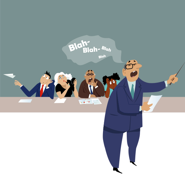 Araştırmalara göre, bir insanın herhangi bir sunumu odaklanarak dinleme süresi 20 dakika. Bu nedenle yapacağınız sunumu, dinleyicilerin ilgisini dağıtmayacak şekilde ayarlamaya özen gösterin. Gereğinden uzun ve görsel, grafik vb. argümanlarla desteklenmemiş slaytlar, kitleyi sıkabilir.